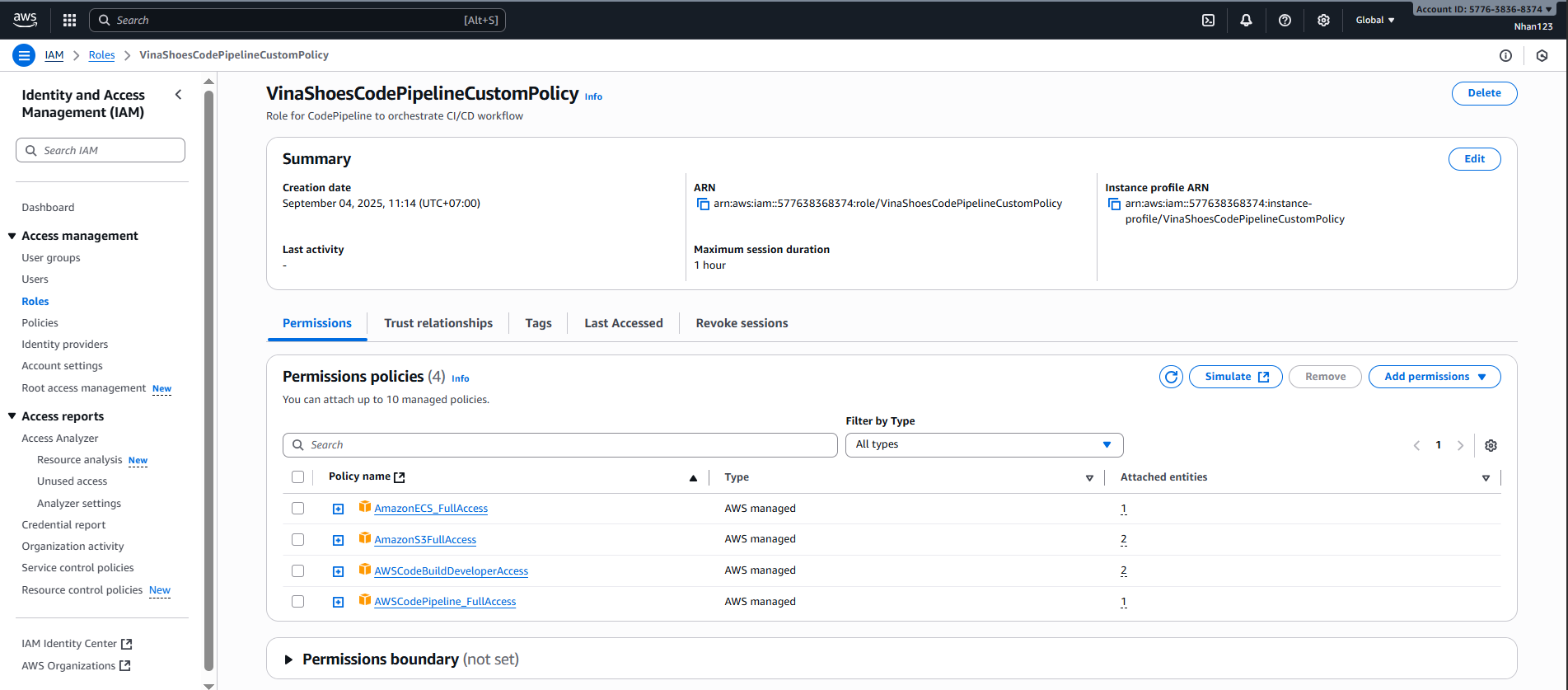 --policy-arn arn:aws:iam::577638368374:policy/VinaShoesCodePipelineCustomPolicy