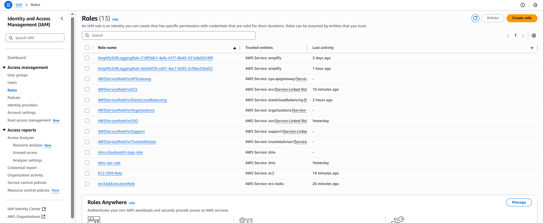 VinaShoes để xem 2 roles đã tạo🔐 Security Best Practice: Trong production environment, nên tạo custom policies với principle of least privilege thay vì sử dụng managed policies có quyền rộng như FullAccess.