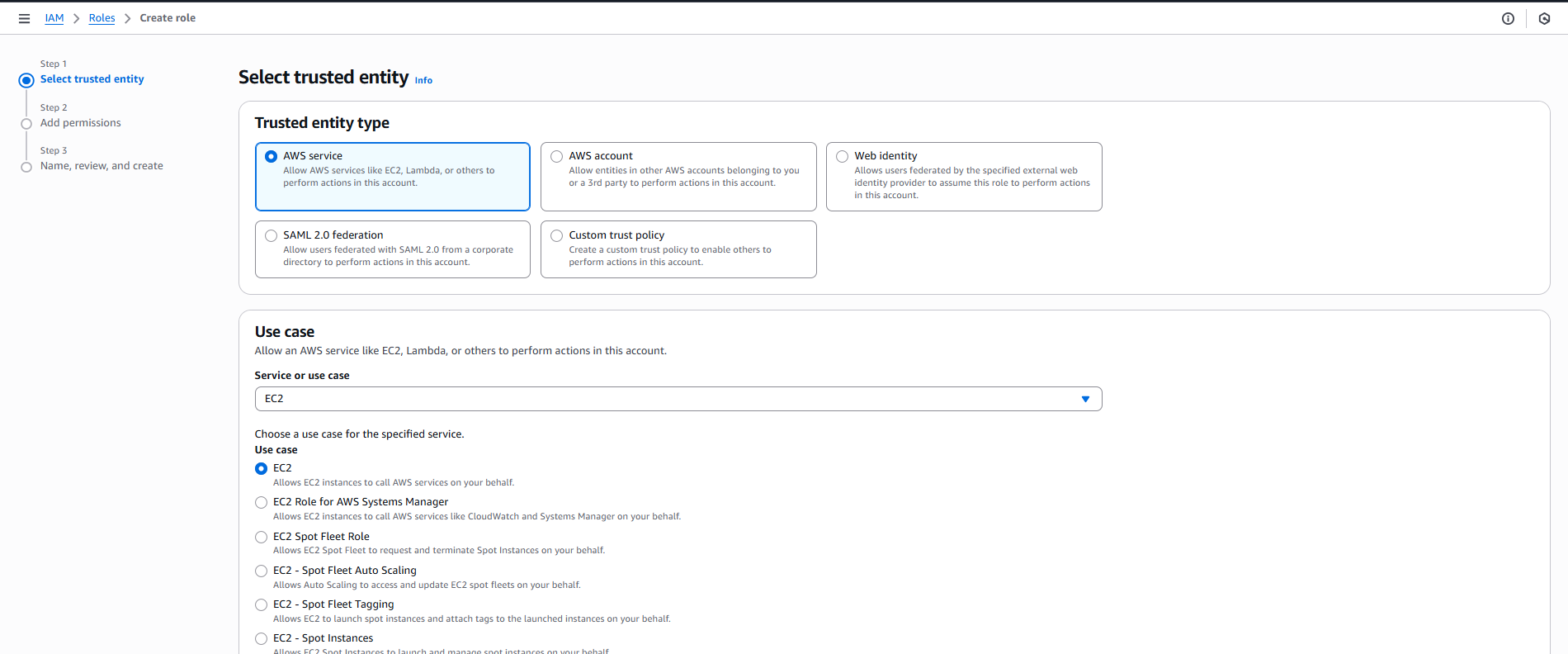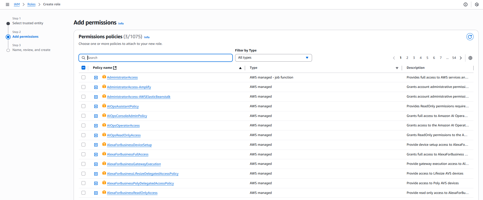 🔐 Security Best Practice: Trong production environment, nên tạo custom policies với principle of least privilege thay vì sử dụng managed policies có quyền rộng như FullAccess